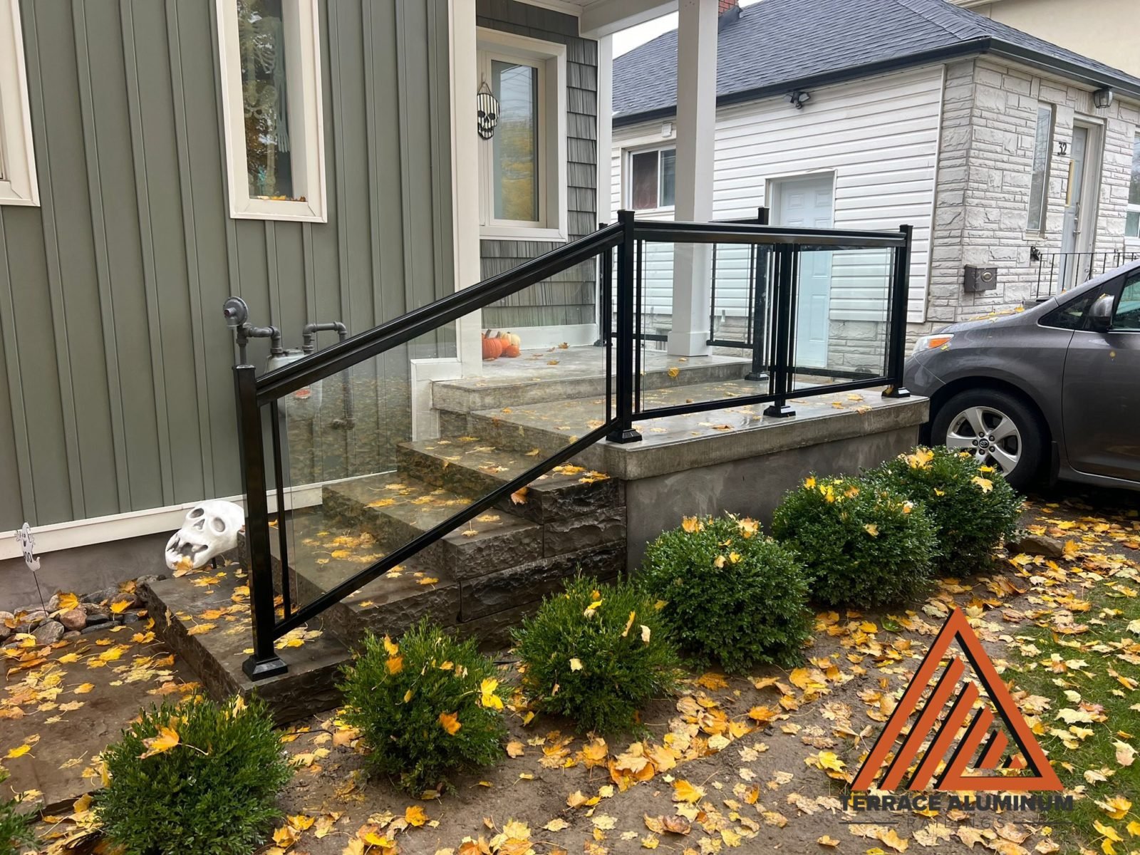clear glass railing for a front porch in mississauga